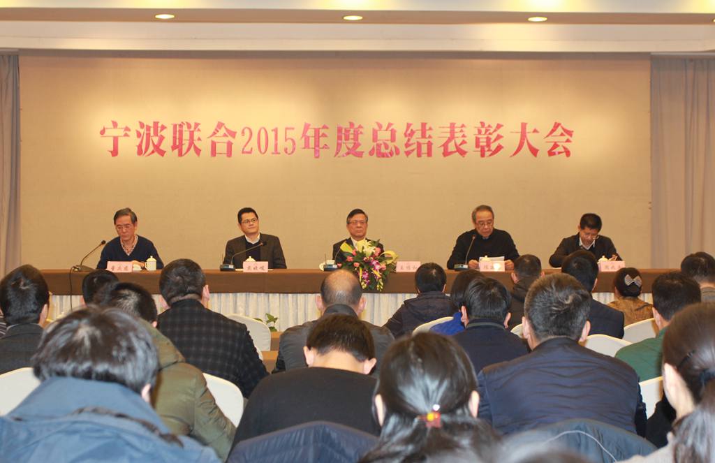2016年2月4日上午,寧波聯合集團股份有限公司在戚家山賓館舉行2015年度總結表彰大會。公司總部全體員工、各分公司、子公司和B類企業領導班子成員以及公司2015年度先進單位代表和先進個人代表參與了總結表彰大會。公司領導王維和、陳建華、戴曉峻、周兆惠、董慶慈在主席臺就座,公司黨委副書記陳建華主持了本次會議。